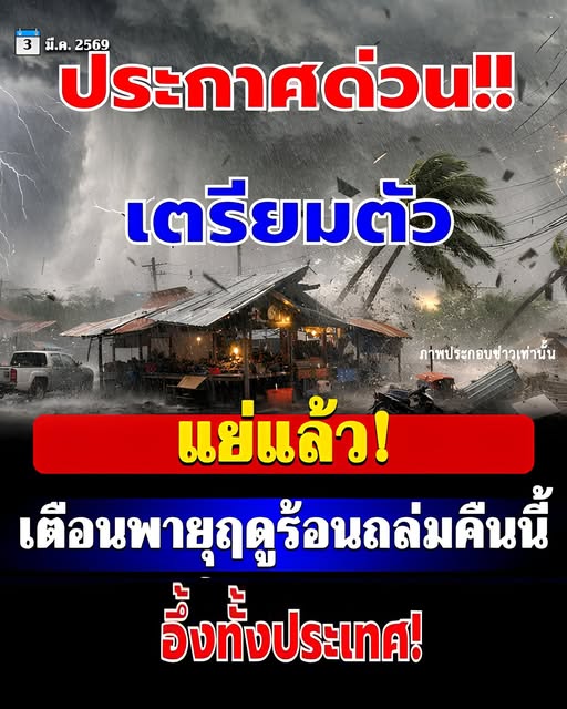 วันที่ 3 กุมภาพันธ์ 2569 กรมอุตุนิยมวิทยา พยากรณ์อากาศ 24 ชั่วโมงข้างหน้า ภาคตะวันออกเฉียงเหนือจะมีพายุฤดูร้อนเกิดขึ้น โดยมีลักษณะของพายุฝนฟ้าคะนอง ลมกระโชกแรง รวมถึงฟ้าผ่าที่อาจเกิดขึ้นได้บางพื้นที่ ทั้งนี้ เนื่องจากบริเวณความกดอากาศสูงหรือมวลอากาศเย็นจากประเทศจีนแผ่ปกคลุมประเทศจีนตอนใต้แล้ว