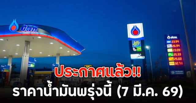 ราคาน้ำมันพรุ่งนี้ (7 มี.ค. 69) บางจาก ปตท. อัปเดตราคาล่าสุด