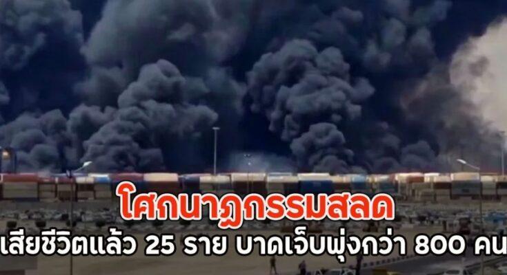 จากวิดีโอที่ได้รับการยืนยัน พบว่าเกิดเพลิงไหม้ก่อนจะเกิดการระเบิดขนาดใหญ่ ทำให้ผู้คนแตกตื่นวิ่งหนี บางรายบาดเจ็บนอนอยู่กลางถนนที่เต็มไปด้วยเศษซากการระเบิดและควันดำพวยพุ่ง ผู้เห็นเหตุการณ์เล่าว่า ขณะเกิดเหตุ โกดังเต็มไปด้วยฝุ่น ควัน และขี้เถ้า จำไม่ได้ว่าหลบใต้โต๊ะเองหรือถูกแรงระเบิดกระแทกเข้าไป ภาพถ่ายทางอากาศเผยให้เห็นจุดเกิดไฟไหม้อย่างน้อย 3 จุด ซึ่งไฟได้ลุกลามจากตู้คอนเทนเนอร์หนึ่งไปยังอีกตู้หนึ่ง กระทั่งรัฐบาลต้องสั่งปิดโรงเรียนและสำนักงานในพื้นที่ชั่วคราว