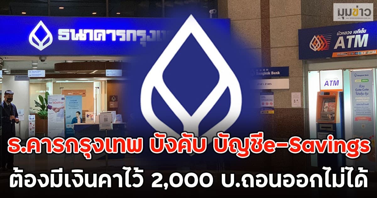วันที่ 9 มีนาคม แบงก์กรุงเทพ ออกกฎ บัญชี e-Saving โดยระบุว่า ตั้งแต่วันที่ 9 เมษายน 2569 เป็นต้นไป ลูกค้าทุกรายต้องมียอดเงินคงเหลือในบัญชีขั้นต่ำ 2,000 บาท