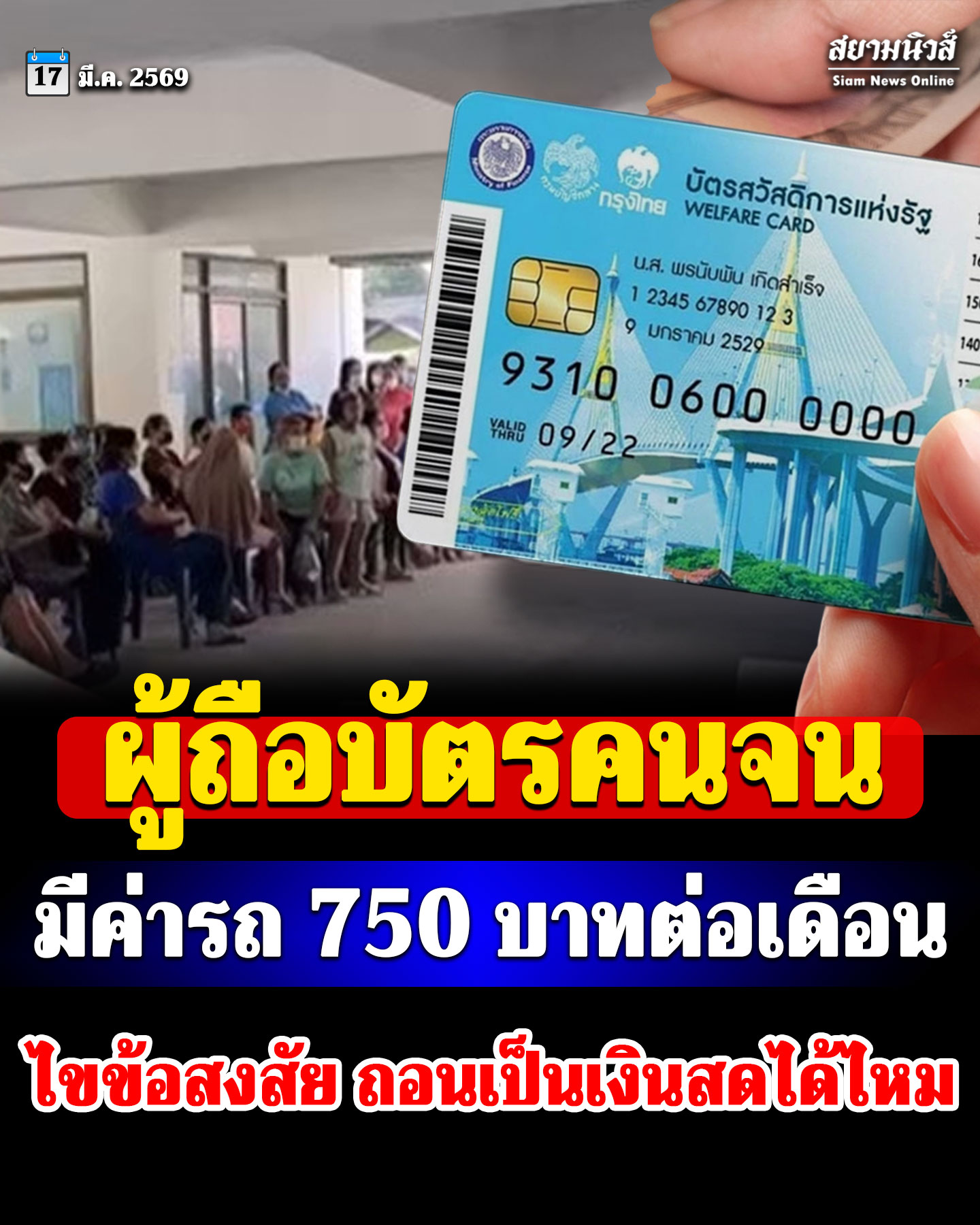 เพื่อส่งเสริมให้ประชาชนหันมาใช้ระบบขนส่งสาธารณะมากขึ้น และช่วยลดภาระค่าใช้จ่ายของผู้มีรายได้น้อย รัฐได้กำหนดวงเงินค่าเดินทางสำหรับผู้ถือบัตรสวัสดิการแห่งรัฐ จำนวน 750 บาทต่อคนต่อเดือน