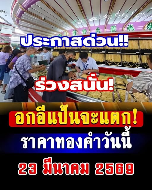 May be an image of text that says ’23 มี.ค.2569 มี.ค. 2569 プランス สยามนิวส์ Siam News Online FINE GOLD 999,9 1000 ¥い3 1ddog 1000g NET WT INE OL0 9950 FIN GOL ၅၅9 LINE GOLD 999,9 F1 C อกอีแป็นจะแตก! อก อกอีแป้ แป้ นจะแตก! ราคาทองคำวันนี้ นี้ 23 มี มีนาคม 2569′