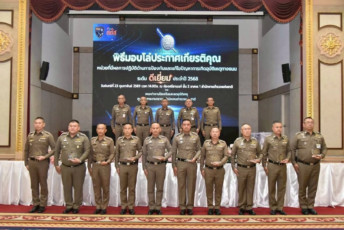 สำนักงานตำรวจแห่งชาติ มอบโล่หน่วยผลงานดีเยี่ยม “ป้องกันแก้ไขปัญหาการเกิดอุบัติเหตุทางถน” กำชับจราจรทั่วประเทศ ตั้งจุดตรวจต้องมี SOP ประสิทธิภาพ โปร่งใส ปลอดภัย สร้างความเชื่อมั่นให้ประชาชน . (24 กุมภาพันธ์ 2569) พล.ต.อ.สำราญ นวลมา รองผู้บัญชาการตำรวจแห่งชาติ ในฐานะผู้อำนวยการศูนย์บริหารงานจราจร สำนักงานตำรวจแห่งชาติ เปิดเผยว่า วานนี้ ( 23 กุมภาพันธ์ ) พล.ต.อ.กิตติ์รัฐ พันธุ์เพ็ชร์ ผู้บัญชาการตำรวจแห่งชาติ (ผบ.ตร.) มอบหมายให้เป็นประธานในพิธีมอบโล่ประกาศเกียรติคุณให้แก่หน่วยที่มีผลการปฏิบัติด้านการป้องกันและแก้ไขปัญหาการเกิดอุบัติเหตุทางถนน ระดับดีเยี่ยม ประจำปี 2568 . จากนั้นเป็นประธานการประชุมบริหารงานจราจร และ ศูนย์บริหารงานจราจร สำนักงานตำรวจแห่งชาติ ครั้งที่ 2/2569 โดยมีคณะทำงานศูนย์บริหารงานจราจร สำนักงานตำรวจแห่งชาติ และผู้แทนหน่วยต่าง ๆ ที่เกี่ยวข้อง ร่วมประชุม ณ ห้องศรียานนท์ สำนักงานตำรวจแห่งชาติ และการประชุมทางไกลผ่านจอภาพ (VDO Conference)