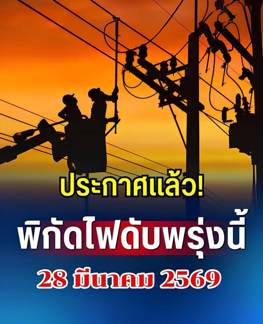 ประกาศแล้ว!! เปิดพิกัด ไฟดับพรุ่งนี้ 28 มี.ค. 69
