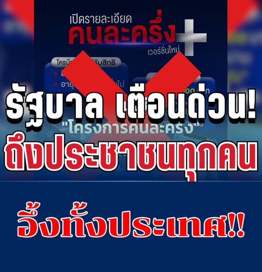 วันที่ 2 เมษายน 2569 เพจไทยคู่ฟ้า ของรัฐบาล ออกประกาศเตือนประชาชนผ่านสื่อออนไลน์ กรณีมีการเผยแพร่ภาพรายละเอียดโครงการ คนละครึ่ง บนโซเชียลมีเดีย โดยยืนยันว่าข้อมูลดังกล่าวเป็นข่าวปลอม และขอให้ประชาชนติดตามข้อมูลจากช่องทางทางการของรัฐบาลเท่านั้น