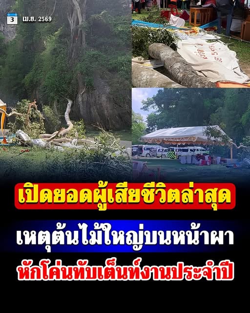 สุดเศร้า! เปิดยอดผู้เสียชีวิตล่าสุด เหตุต้นไม้ใหญ่บนหน้าผาหักโค่นทับเต็นท์งานประจำปี
