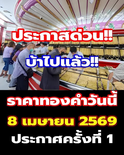 ราคาทองคำวันนี้ 8 เมษายน 2569 ประกาศครั้งที่ 1