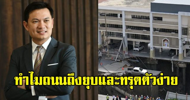 โดยระบุว่า สาเหตุที่ถนนในกรุงเทพฯ ถึงยุบ ทรุดตัวง่าย เกิดจาก 1.ถนนไม่ได้มาตรฐาน ตั้งแต่การออกแบบ การก่อสร้าง การซ่อมแซม ทำให้ถนนไม่สามารถรับน้ำหนักได้ตามมาตรฐาน 2.ใช้ถนนผิดประเภท ถนนในซอยเล็กๆ แคบๆ
