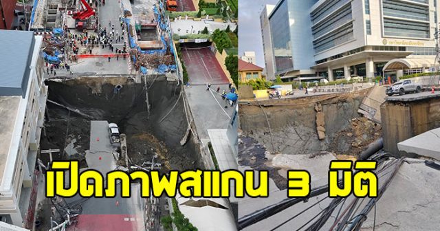 ซึ่งต่อมาได้เกิดดินสไลด์จากผิวจราจรลงอีกประมาณ 2 เมตร บริเวณด้านหน้าสถานีตำรวจนครบาลสามเสนเราไปดูภาพสแกน 3 มิติ