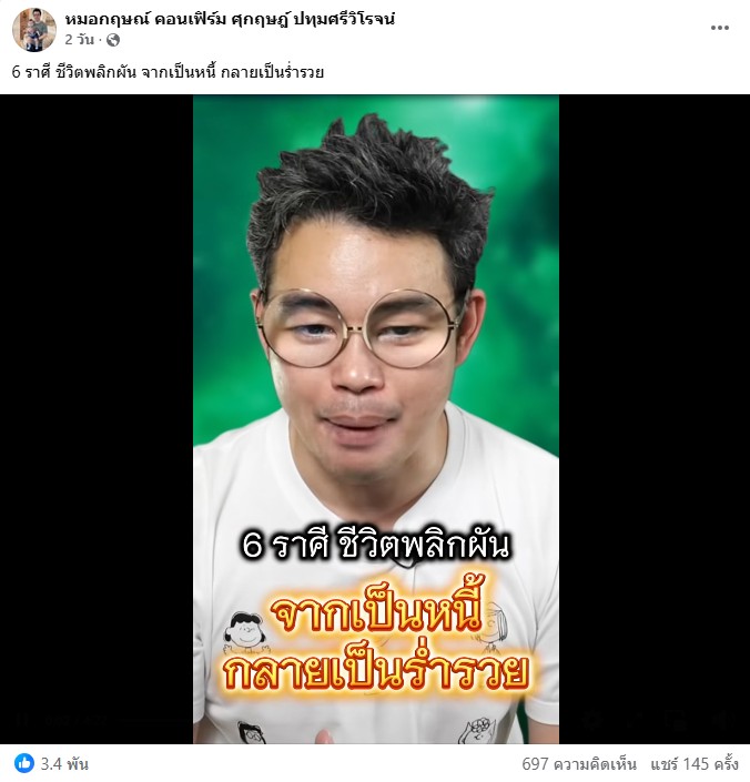 โดย หมอกฤษณ์ ทำนายว่า 6 ราศี ชีวิตพลิกผัน จากเป็นหนี้ กลายเป็นร่ำรวย เมษ เมถุน สิงห์ กันย์ กุมภ์ มีน