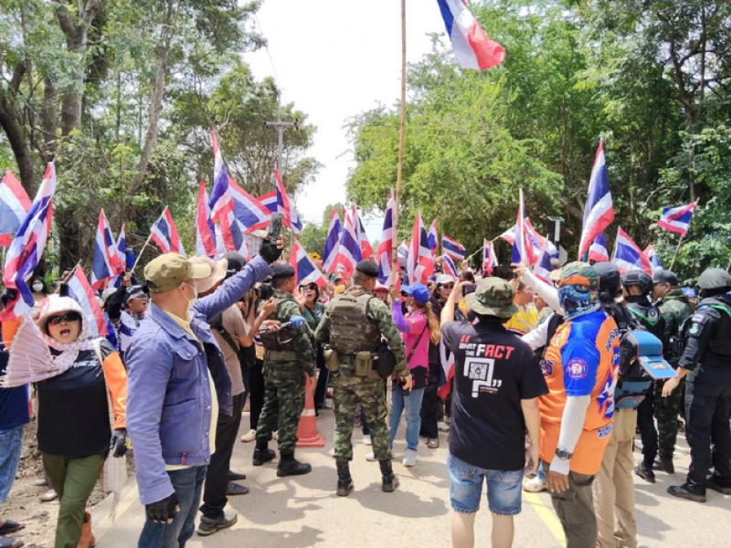 ภายหลังชาวบ้านจากพื้นที่บ้านหนองหญ้าแก้ว อ.โคกสูง จ.สระแก้ว รวมตัวกันที่บริเวณจุดตรวจ ชรบ.มากกว่า 100 คน เพื่อแสดงออกเชิงสัญลักษณ์ เนื่องในวันพระราชทานธงชาติไทย 108 ปี
