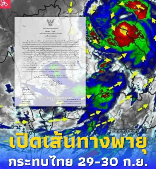 จากอิทธิพลของพายุ “บัวลอย” ส่งผลให้ในช่วงวันที่ 29-30 ก.ย. 68 ร่องมรสุมกำลังแรงพาดผ่านภาคเหนือ ภาคกลางตอนบน และภาคตะวันออกเฉียงเหนือ ประกอบกับมรสุมตะวันตกเฉียงใต้ที่พัดปกคลุมทะเลอันดามัน ประเทศไทย และอ่าวไทยมีกำลังแรง ทำให้ประเทศไทยมีฝนตกหนักหลายพื้นที่ กับมีลมแรง และมีฝนตกหนักมากบางแห่งในภาคเหนือ ภาคตะวันออกเฉียงเหนือตามแนวขอบของพายุ รวมถึงด้านรับมรสุมในภาคตะวันออกและภาคใต้ฝั่งตะวันตก ขอให้ประชาชนในบริเวณดังกล่าวระวังอันตรายจากฝนตกหนักถึงหนักมากและฝนที่ตกสะสม ซึ่งอาจทำให้เกิดน้ำท่วมฉับพลัน น้ำป่าไหลหลาก และน้ำล้นตลิ่ง โดยเฉพาะพื้นที่ลาดเชิงเขาใกล้ทางน้ำไหลผ่าน พื้นที่ลุ่ม และพื้นที่น้ำท่วมขัง