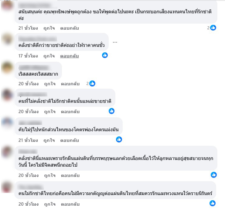 -สนับสนุนค่ะ คุณพุทธิพงษ์พูดถูกต้อง ขอให้พูดต่อไปนะคะ เป็นกระบอกเสียงแทนคนไทยที่รักชาติค่ะ