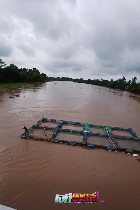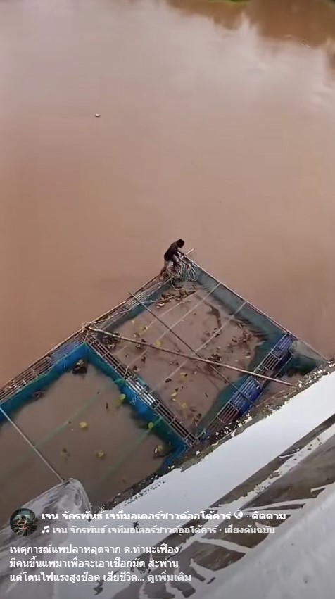 ขณะที่เจ้าหน้าที่สามารถกู้แพปลาไว้ได้ริมตลิ่ง แต่ร่างผู้ประสบเหตุยังคงสูญหายอยู่ในแม่น้ำ