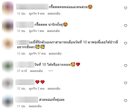 กรี๊ดดดคนหล่อและคนสวย😍 , กรี๊ดดดด น่ารักทั้งคู่😍 , เบบี๋ที่รักตัวเองเราสามารถเลื่อนวันที่ 10 มาพรุ่งนี้เลยได้ป่าวนี่อยากเขินละ🥳🥳 ,วันที่ 10 ได้หรือยางงงงง🥰❤️ , สวยหล่อทั้งคู่เลย