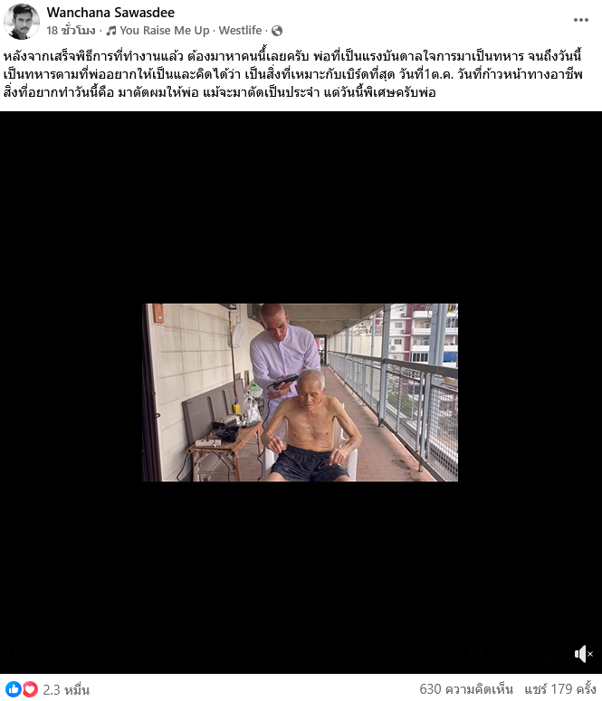 เมื่อวันที่ 1 ตุลาคม 2568 ที่ผ่านมา พลโท วันชนะ สวัสดี ผู้อำนวยการสำนักงานประสานภารกิจด้านความมั่นคงกับกองอำนวยการรักษาความมั่นคงภายในราชอาณาจักร (สน.ปร.มน.) และรองโฆษกกองบัญชาการกองทัพไทย ได้โพสต์คลิปวิดีโอพร้อมข้อความ ผ่านเฟซบุ๊กส่วนตัว Wanchana Sawasdee โดยระบุว่า หลังจากเสร็จพิธีการที่ทำงานแล้ว ต้องมาหาคนนี้เลยครับ พ่อที่เป็นแรงบันดาลใจการมาเป็นทหาร