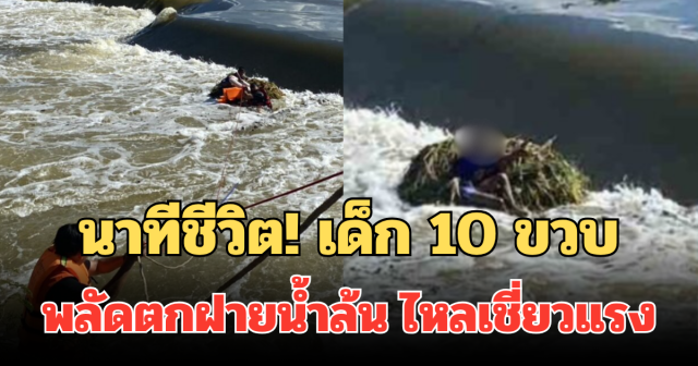 นาทีชีวิต! เด็ก 10 ขวบ พลัดตกฝายน้ำล้น ไหลเชี่ยวแรง จนท.เข้าช่วยเหลือด่วน