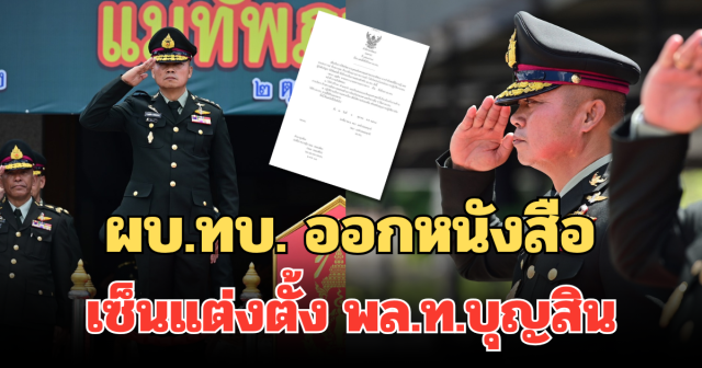 คำสั่งกองทัพบก ผบ.ทบ. ออกหนังสือ เซ็นแต่งตั้ง พล.ท.บุญสิน