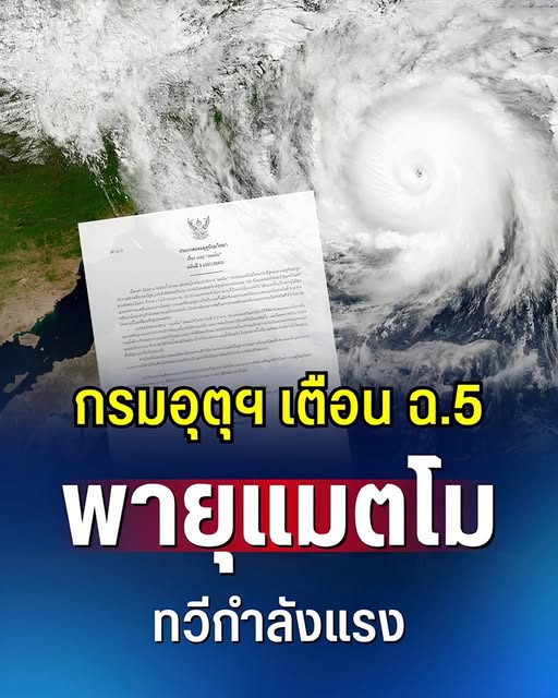 เมื่อวันที่ 4 ตุลาคม 2568 ศูนย์ประชาสัมพันธ์กรมอุตุนิยมวิทยา ประกาศกรมอุตุนิยมวิทยา เรื่อง พายุ แมตโม ฉบับที่ 5 (281/2568) โดยระบุว่า เมื่อเวลา 16.00 น. ของวันนี้ (4 ต.ค. 68) พายุโซนร้อนกำลังแรง แมตโม บริเวณทะเลจีนใต้ตอนบน มีศูนย์กลางอยู่ที่ละติจูด 18.5 องศาเหนือ ลองจิจูด 114.8 องศาตะวันออก ความเร็วลมสูงสุดใกล้ศูนย์กลางประมาณ 100 กิโลเมตรต่อชั่วโมง กำลังเคลื่อนตัวทางทิศตะวันตก ด้วยความเร็วประมาณ 25 กิโลเมตรต่อชั่วโมง